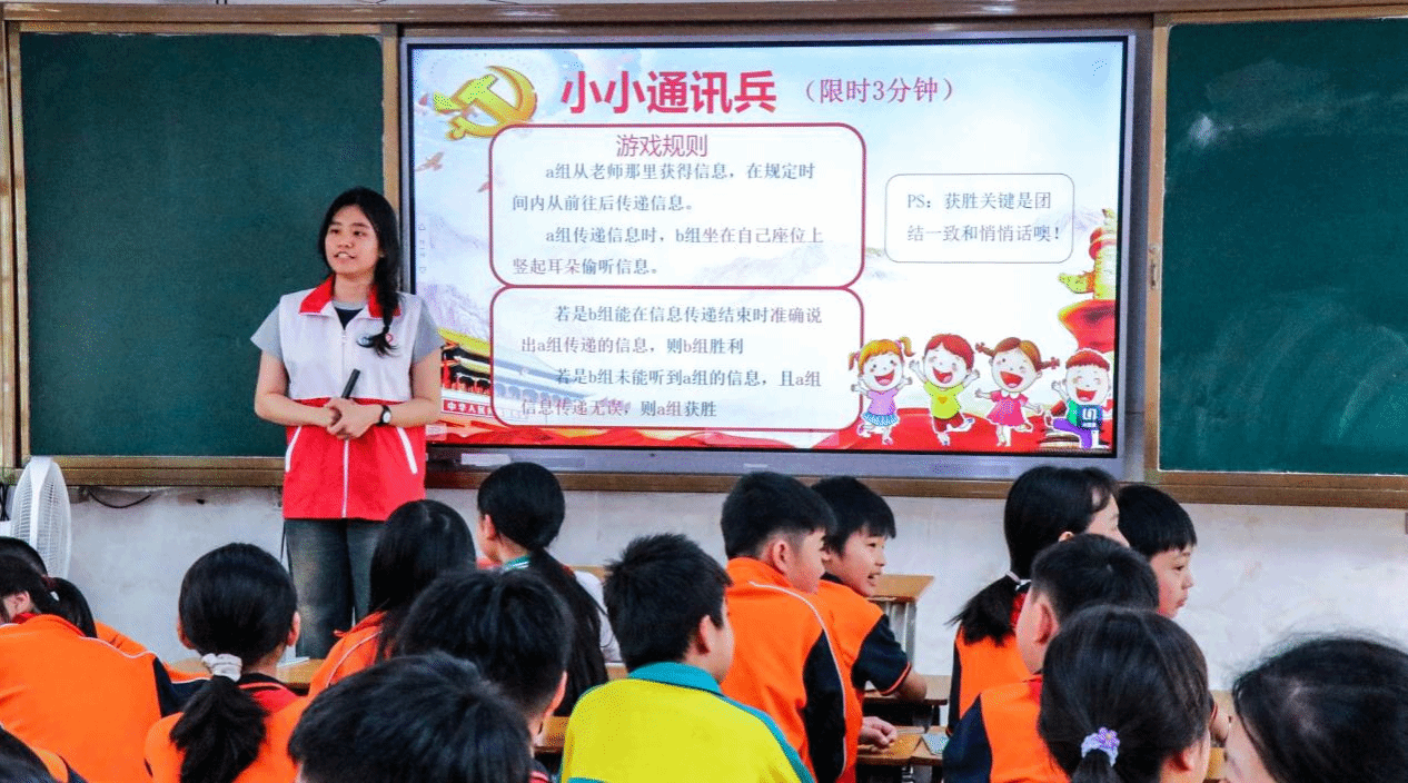 为全面贯彻落实立德树人根本任务,深入实施《广东省师范(教师教育)院校纵向帮扶欠发达地区“三所学校”和县中质量提升工作方案(2024-2027年)》,加快推进五华县“三所学校”纵向帮扶工作,推动党史教育与心理健康教育深度融入乡村校园,4月9日,我院社会实践队依托“三所学校”帮扶项目专项经费支持,走进五华县安流镇第一小学,开展心理团辅活动与党史宣讲活动,以专业实践助力乡村教育高质量发展。