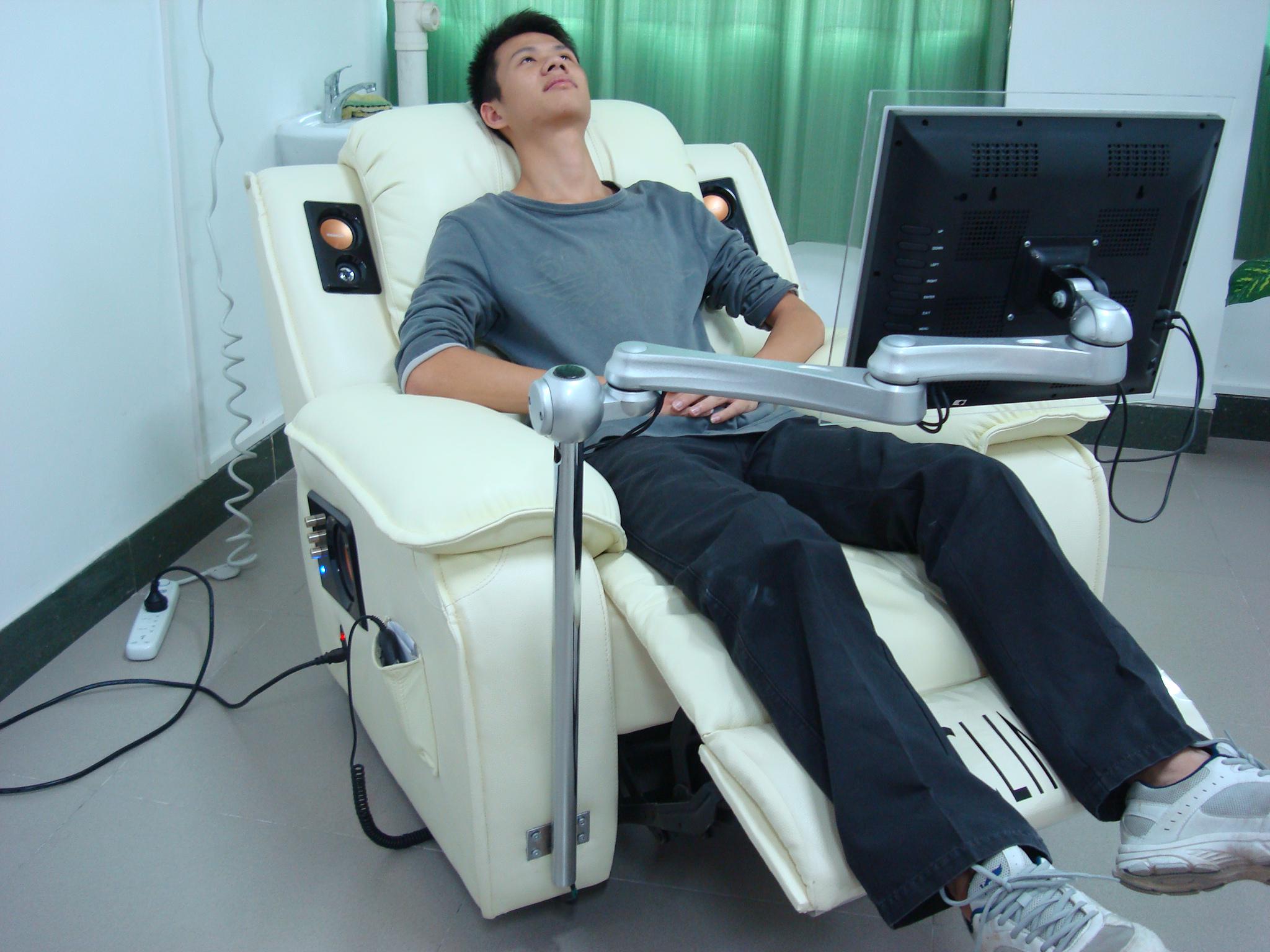 心理咨询室配置有一套转角沙发和茶几、一台空调及一套音乐放松治疗椅。其中,音乐放松椅可在特定的环境氛围和特定的乐曲旋律、节奏中,使来访者心理上产生自我调节作用,心理逐渐恢复平静,从而达到治疗的目的。心理咨询室主要用于《咨询心理学》、《临床心理学》等心理学专业课程的实验教学,加强心理学专业学生心理咨询和治疗的操作技能;同时,心理咨询室也实施单个来访者心理辅导或咨询。