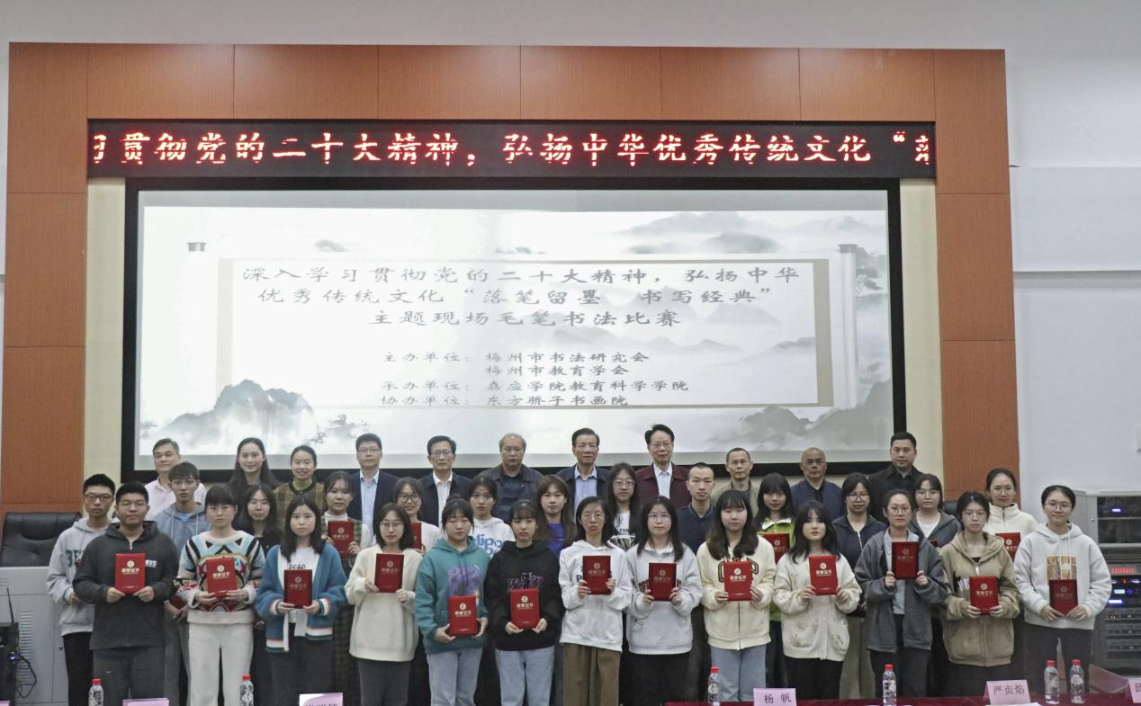 为全面贯彻落实党的二十大精神,弘扬中华优秀传统文化,2023年3月26日上午由我院承办的梅州市 “落笔留墨,书写经典”主题书法比赛在文科楼举行。本次活动由梅州市教育学会、梅州市书法研究会主办,嘉应学院教育科学学院承办,东方娇子书画院协办,出席活动的嘉宾有梅州市社科联副主席丘灵、梅州市社科联副秘书长丘国明、梅州市教育局美术教研员曾冬容、梅州市教育学会会长、嘉应学院教育科学学院院长范远波,梅州市书法研究会主席马劲松、梅州市教育学会秘书长、嘉应学院教育科学学院副院长张登山、梅州市书法研究会副主席杨帆、梅州市书法研究会副主席严贞焰、梅州市水务局原局长肖昭穗、原梅州市卫生局长张奕明、梅州市人大常委会财经工委原主任张梓明等。