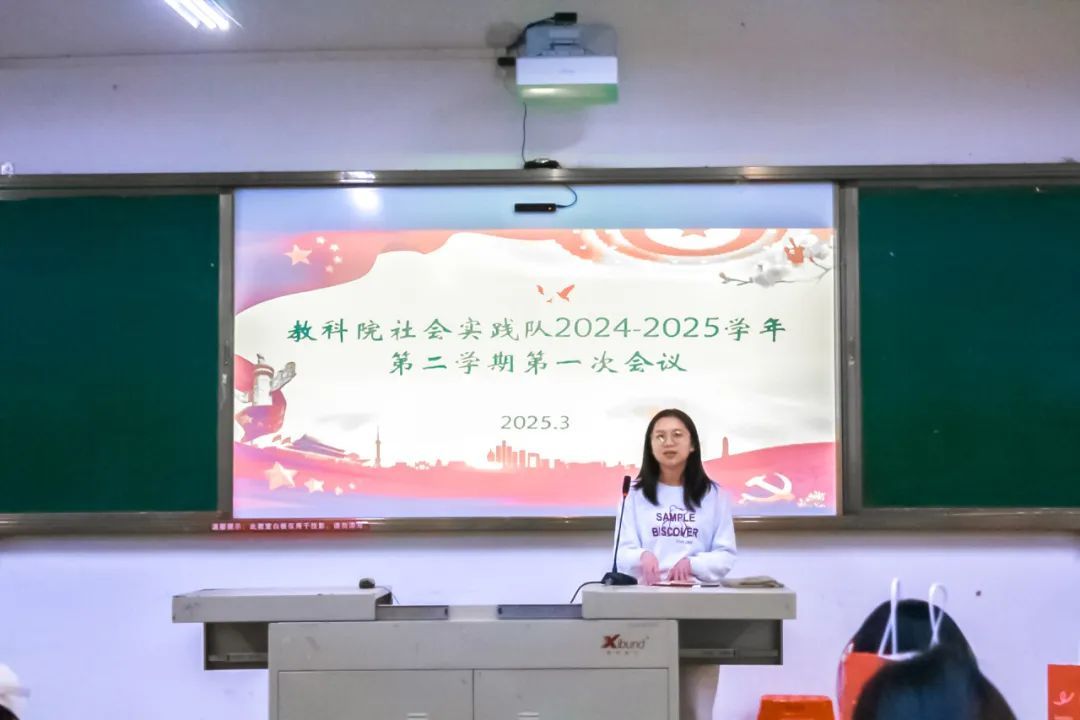 会议伊始,社会实践队负责人林雨君首先对上一学期的活动进行了全面的总结。她回顾了队伍过去一学期在外出实践、志愿服务、项目申报等多个方面所取得的成绩,对新学期的活动进行安排,明确了实践队新学期的重点任务。
