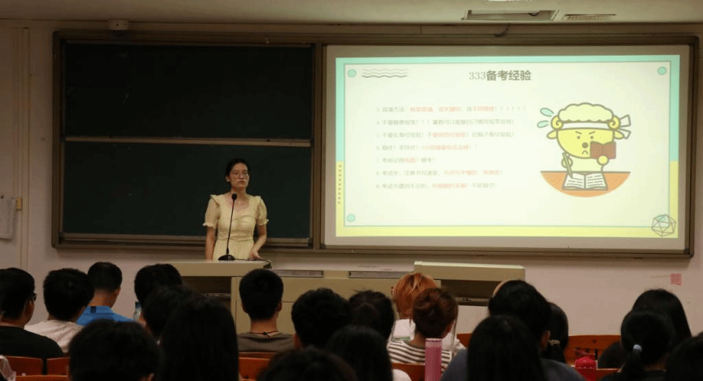 会上,考研上岸的同学为大家普及了考研常识,如专业硕士与学术硕士的区别,考研的流程等。他们强调在考研过程中,心态非常重要,建议即使在高强度的备考阶段也不要强迫自己,要劳逸结合,积极备考。在学科备课方面,从政治、英语、专业课三方面进行了细致分析,强调正确的方法加之不懈的努力以及恰当的复习资料正是成功的一半。