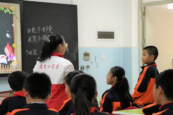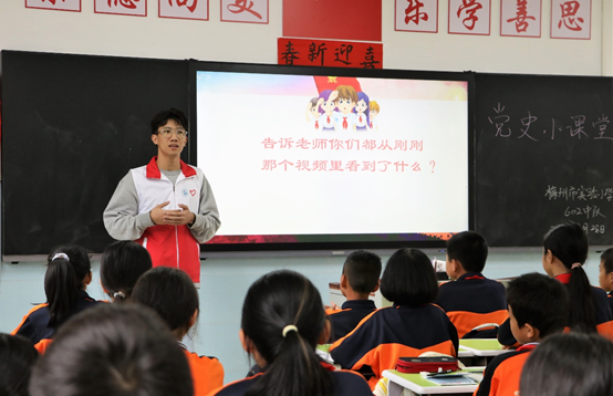 从中国共产党成立到南昌起义,从三河坝战役到井冈山会师,从抗日战争、解放战争到新中国成立,一段段艰苦卓绝的斗争历史,一个个共产党员的英雄事迹,在宣讲员“接地气”的讲述中变得鲜活起来。他们用直观的图片、动人的故事、轻松的游戏,带领学生们走进恢弘的历史画卷。