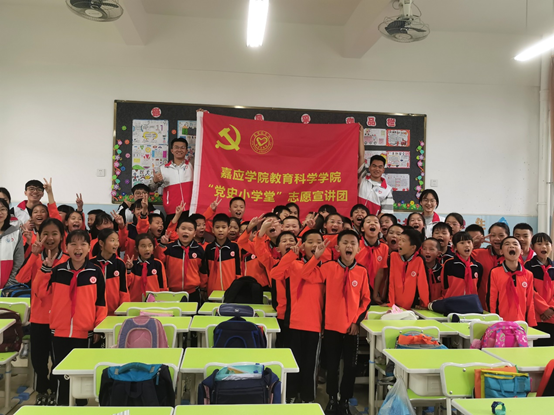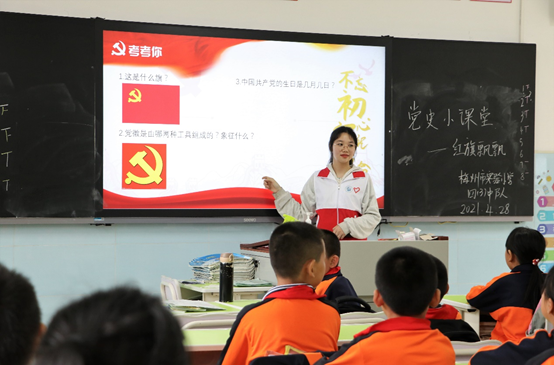 4月28日下午,嘉应学院教育科学学院“党史小学堂”志愿服务宣讲团“听党话、感党恩、跟党走”宣讲活动走进梅州市实验小学。