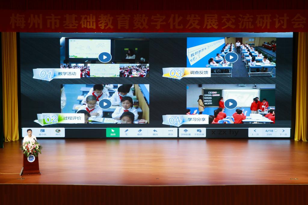 2日下午,参会教师进行教学观摩,分为小学语文、英语和初中物理、数学、政治等学科6个课例展示,并就展示课的信息化运用(希沃白板5、小海螺金牌助教、麻吉星等)和课例特色展开主题研讨和分享。最后,教育数字化专家和学科教研员共同探讨了梅州基础教育数字化的改革与发展之路。