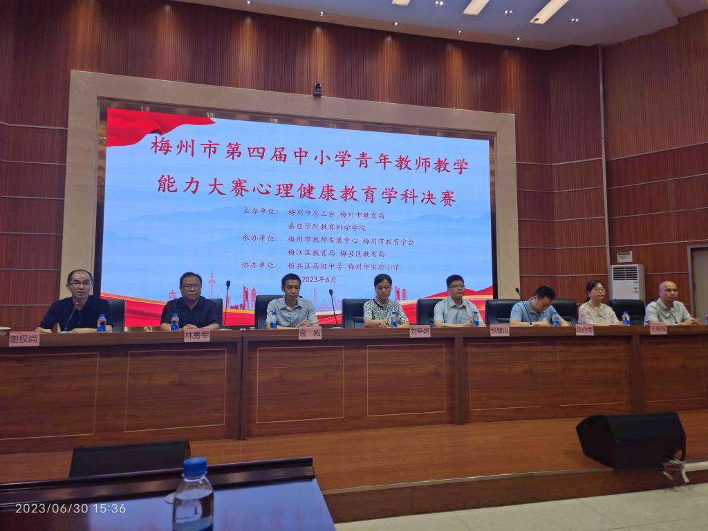 6月29-30日为研讨新课程理念下的心理健康教育课堂教学策略,展示优秀青年教师的课堂教学风采,选拔广东省第四届青年教师教学能力大赛种子教师, 由梅州市总工会、梅州市教育局主办,梅州市教师发展中心、嘉应学院教育科学学院承办,梅州市教育学会协办的“梅州市第四届中小学青年教师教学能力大赛心理健康教育学科决赛活动”在梅州市实验小学、梅县高级中学举行。
