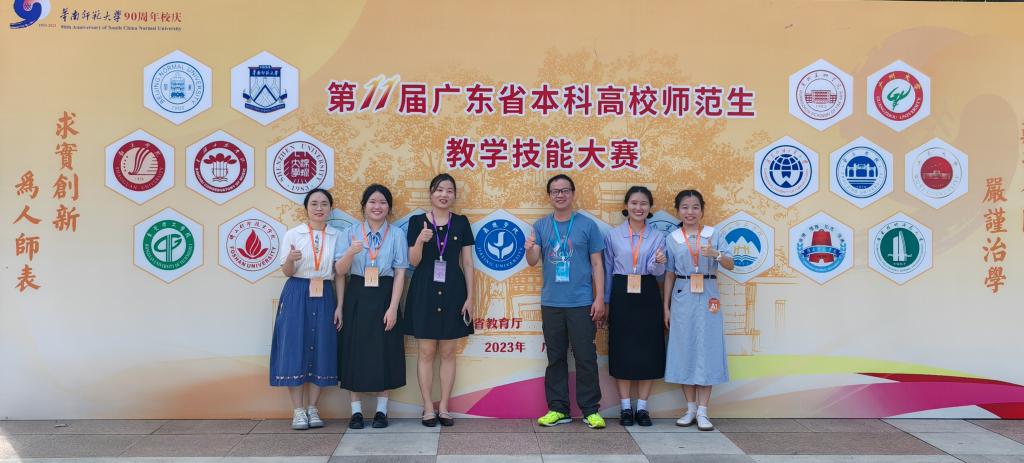 9月23日-24日,我院学前教育专业四位同学在陈瑜林副院长与董慧敏老师的带队下,参加了第11届广东省本科高校师范生教学技能大赛(学前教育组)决赛。此次大赛由广东省教育厅主办,华南师范大学教育科学学院学前教育学科组委会承办,来自广东省内14个高校学前教育专业的56名学生参加了此次比赛。