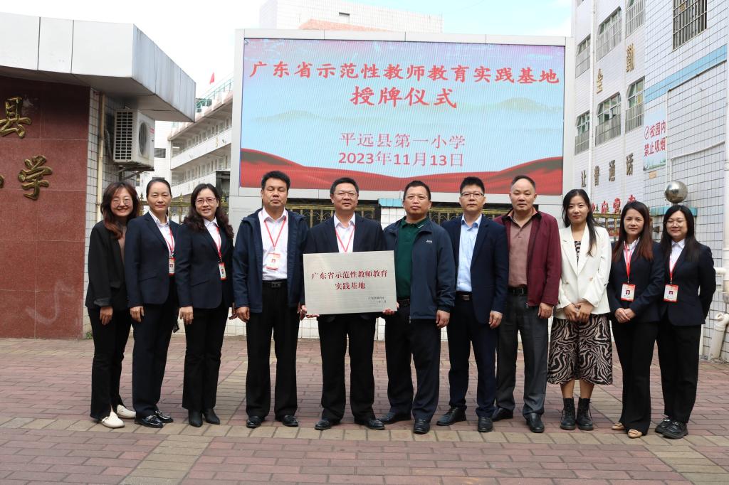 为提升人才培养质量,培养学生实践技能,拓宽在校生实习及毕业生就业渠道,进一步推动产学研深度融合,搭建实践育人、就业育人高质量平台。2023年11月13日上午,嘉应学院教育科学学院校外实习基地在平远县第一小学顺利举行授牌签约仪式。平远县第一小学校长韩垂栋、副校长刘梦华、教研主任陈启林、教育科学学院书记陈育文、学院副院长张登山、学院师范技能训练中心主任黄志强、学院教师董慧敏共同参加基地授牌签约仪式。