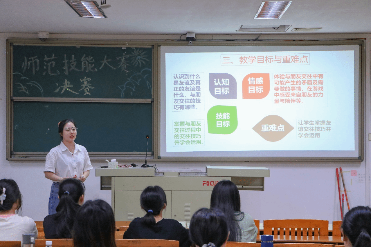 本次大赛旨在深入挖掘和展示我院心理学师范生的优秀才能,为即将到来的省级师范技能比赛热身。赛事自启动以来吸引了心理学专业学生们的高度关注,他们踊跃报名,积极准备。决赛比赛期间,选手们在“三分钟说课+八分钟授课”环节展现了其卓越的师范技能和专业知识,以及出色的教学设计、课堂授课和临场互动等多方面能力。经过紧张激烈的竞争,8位选手从众多参赛者中脱颖而出。在接下来的两个月中,他们将接受专业老师的指导和训练,以进一步提升自己的能力。最终,这8位选手中将有5位被选拔出来,代表我院参加下一届的省级师范技能大赛,展现我们学院的风采。