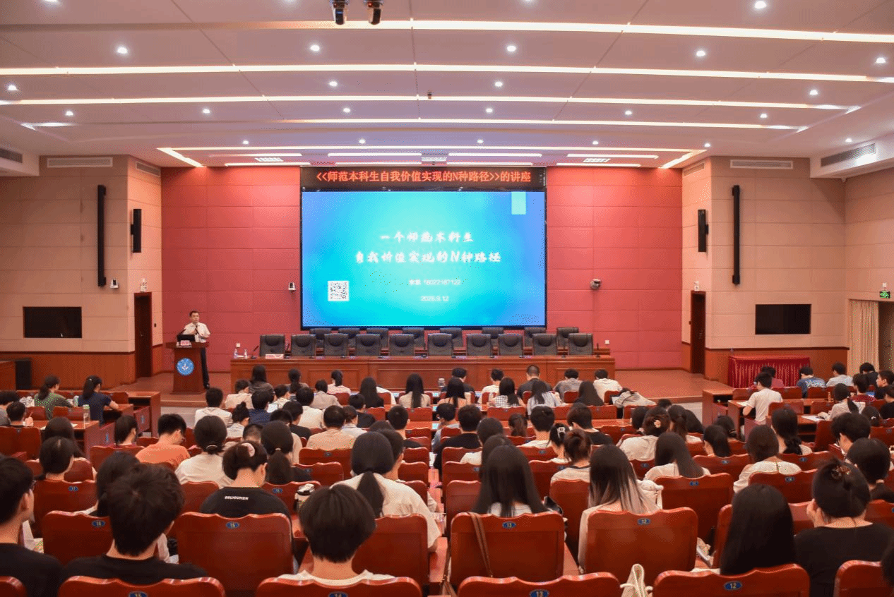 为深化师范专业毕业生的专业素养与就业竞争力,2025年9月12日,教育科学学院特邀李凯校长开展题为“本科生自我价值实现的N种形式”专题讲座。学院副院长张登山主持本次讲座,小学教育、教育技术、心理学、学前教育等专业的毕业生踊跃参与。