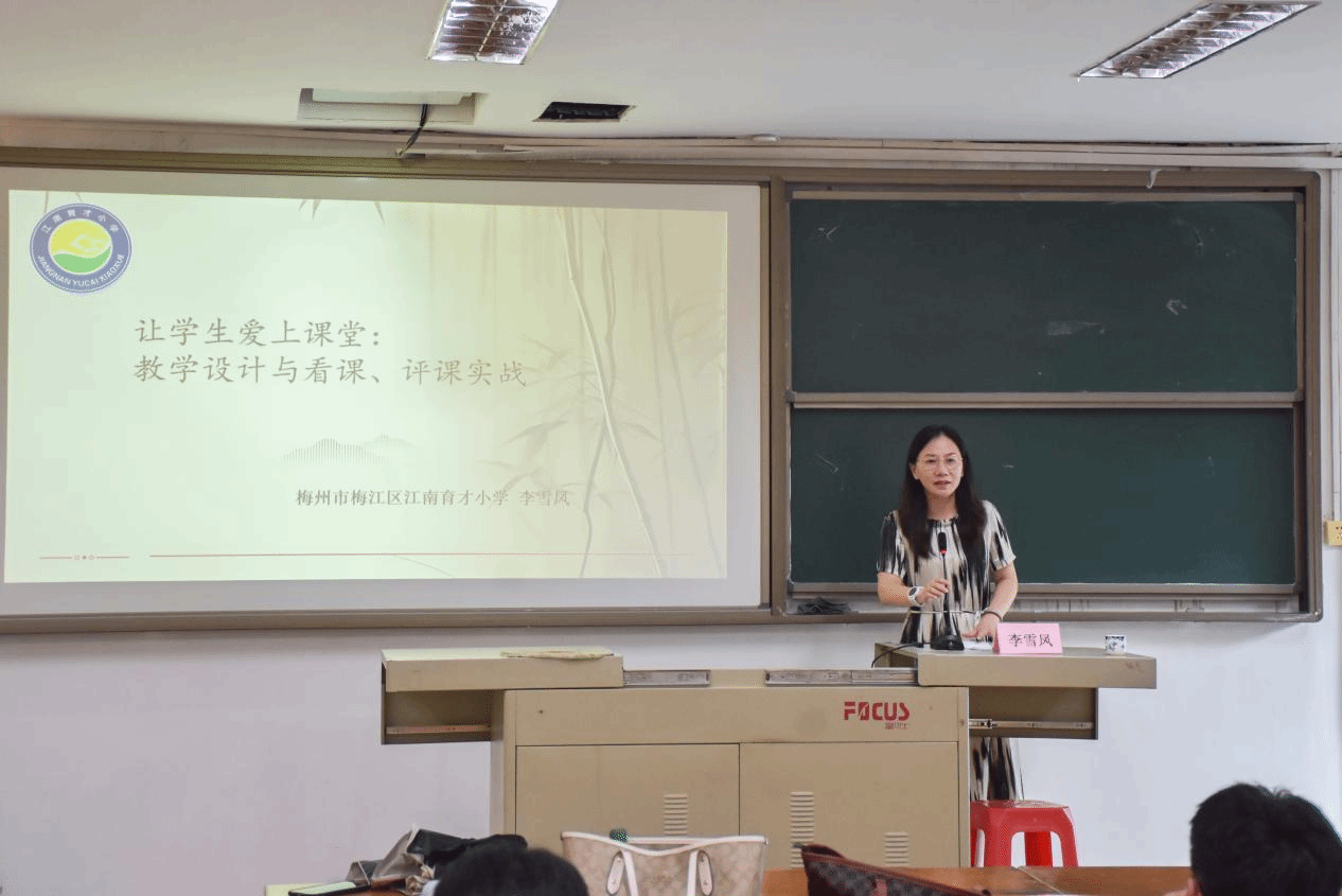 为提升小学教育专业毕业生的教学技能,2025年9月17日下午,教育科学学院邀请梅江区江南育才小学李雪凤校长举办了主题为“让学生爱上课堂:教学设计与看课、评课实战”的讲座。此次活动由教育系系主任罗九平主持,小学教育专业的100多名毕业生积极参与。