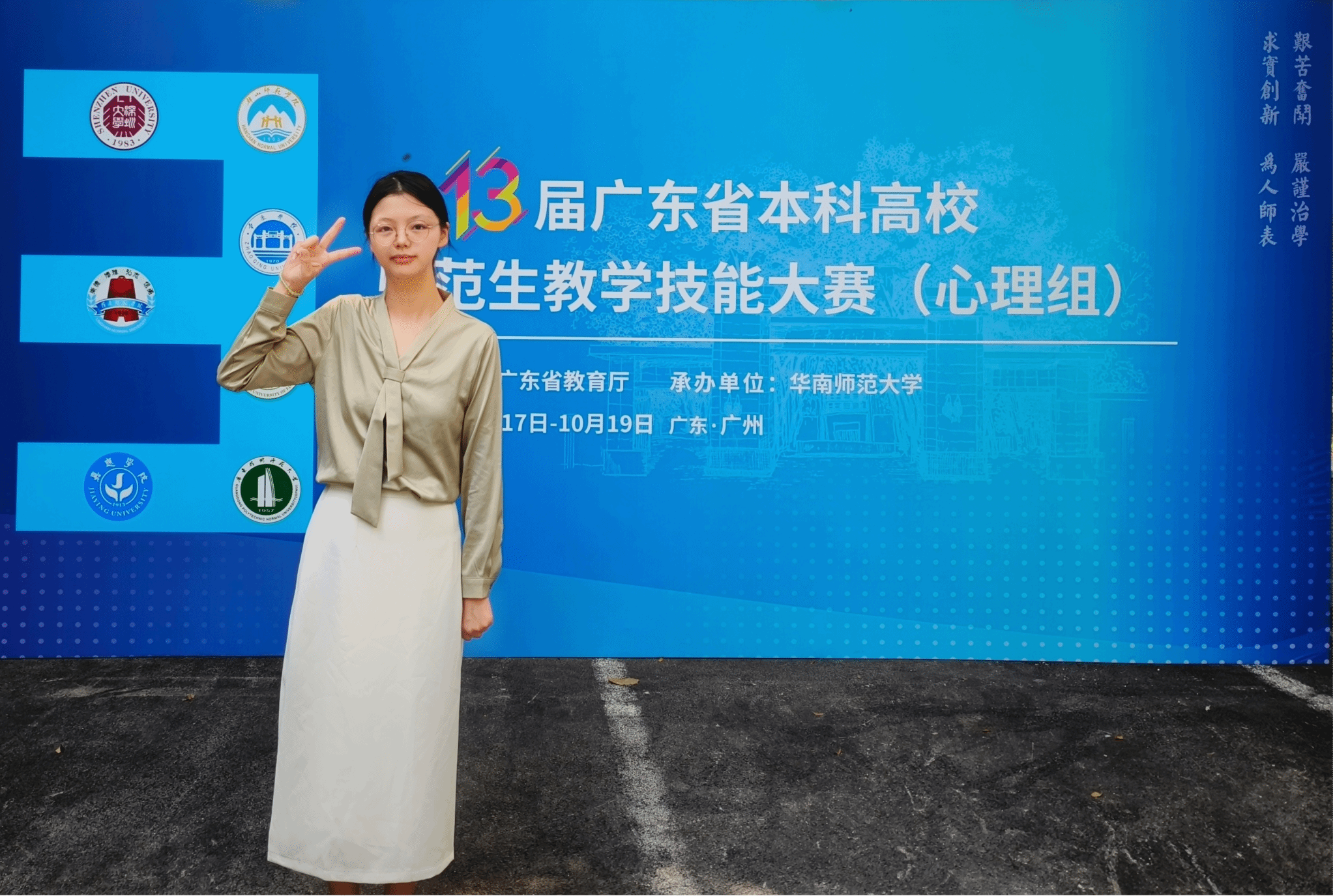 10月18日至19日,第十三届广东省本科高校师范生教学技能大赛(心理组)决赛在广州落下帷幕。本次大赛由广东省教育厅主办、华南师范大学心理学院学科组委会承办,汇聚全省11所高校的55名心理学专业学子同台竞技,是全面检验师范生教学能力与职业素养的省级重要赛事。