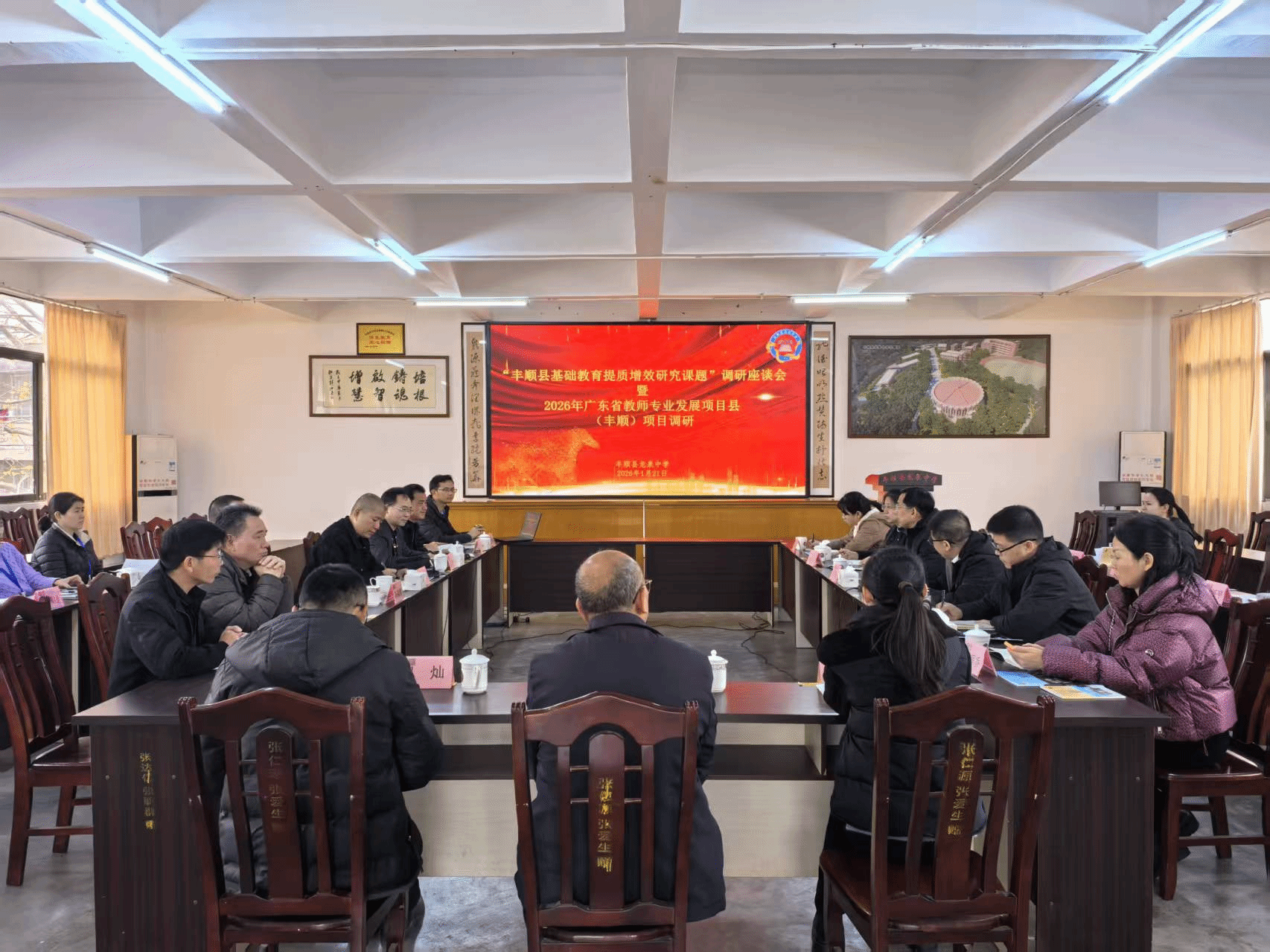 为充分发挥学院学科专业优势,深化校地协同育人机制,精准对接县域基础教育提质增效核心需求,全力助力2026年广东省教师专业发展项目县(丰顺)建设,1月21日上午,教育科学学院、教师教育学院联合组建调研团队,赴丰顺县龙泉中学参加调研座谈会。校地双方相关负责人、骨干教师代表等共同参会交流。