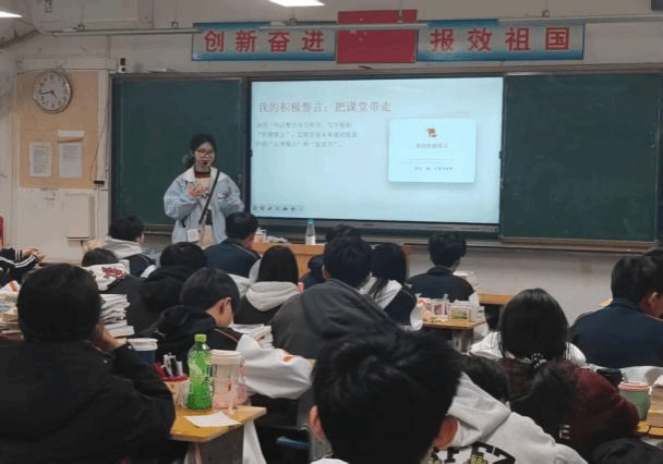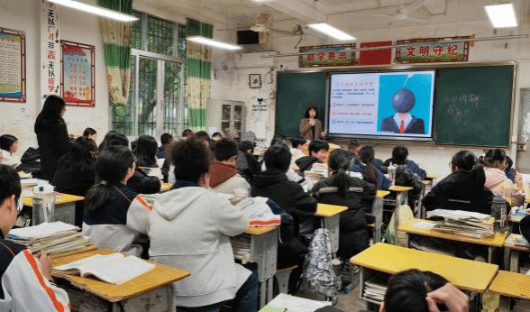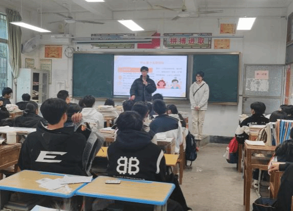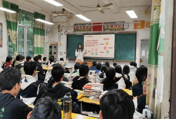 随后,学员们分组进入高一、高二级及初二年级共8个班的课堂,开展互动式班会/活动课。课堂以“情感漂流瓶”“和心情打招呼”等趣味互动游戏拉开序幕,迅速营造出轻松活跃的课堂氛围,拉近了“准教师”与学生之间的距离。在随后的主题授课中,学员们围绕自我认知、情绪管理及人际交往等主题,引导学生真诚分享内心感受,学习倾听与共情。双方在积极互动中传递了积极的人生态度,并深刻认识到主动学习的重要性。龙泉中学各班班主任及科任教师也积极参与课堂活动,与学生们共同体验、交流感悟。